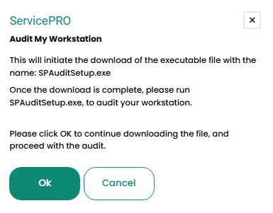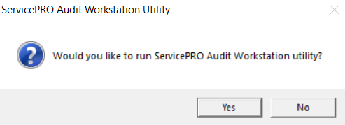 7. It will then start running the utility, and will show the prompt shown below, asking "Would you like to run ServicePRO Audit Workstation Utility?β β Please click βYesβ on this prompt.
