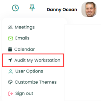 1. Navigate to the user profile icon on the top left of the screen, and click on the Audit My Workstation option.
