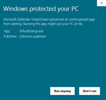 4. Navigate to the Downloads folder on your PC and double-click on the file to execute the SPAuditSetup.exe. It will then show a security warning prompt: