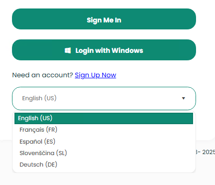 The following languages are available:- US English