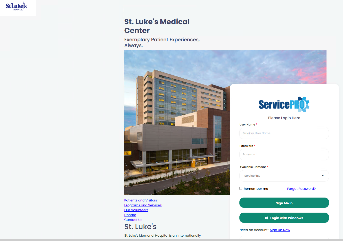 ServicePRO features a Login Page with several editable sections. Each section can be customized by an Administrator using the Portal Designer to suit the needs of the organization.Editable items include:
