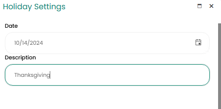 - Enter a description (for example, New Years Day). Click Enter to set the holiday date.