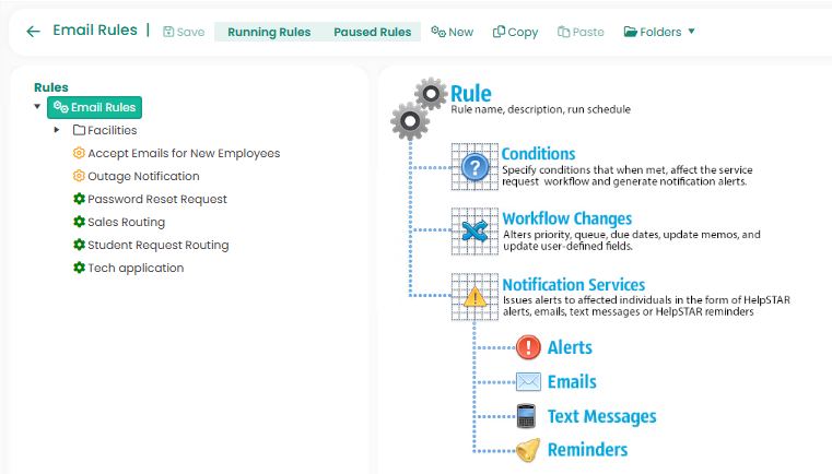 • Pause – Pause the rule selected in the ServicePRO Rules tree view.