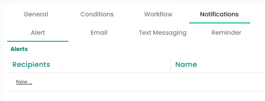 For our scenario, we will use email notification. In the Email tab, click on the New link in the Caption column.