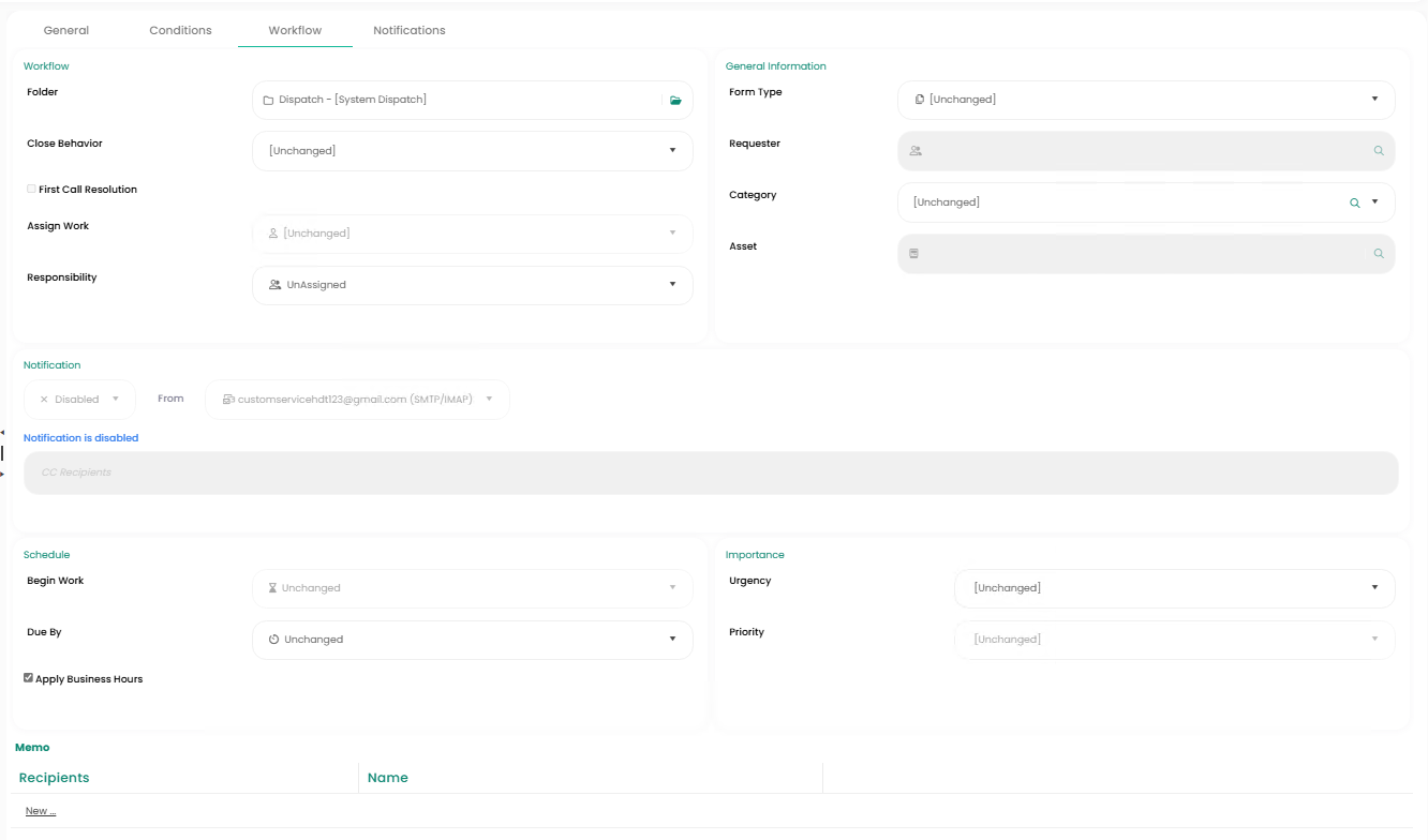 When an email meets all of the conditions that were set on the Conditions tab, a request is created and automatically inherits the characteristics you set in this tab.