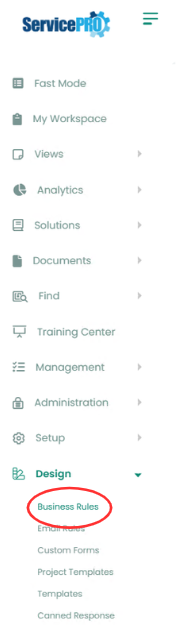 - From the Design tab, click on the Business Rules option as highlighted below.