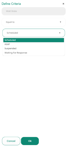 Define Criteria - Click on the And or Or Selection Type radio button to select the operator you want to use to combine your search strings. In the example above, the search would find requests that are either “Scheduled”, "ASAP", "Suspended", or "Waiting for Response".