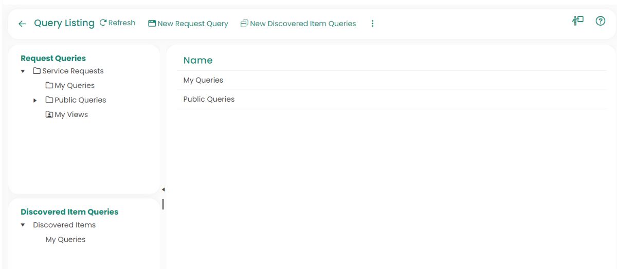 - My Queries: View Discovered Item queries that you have created and saved.