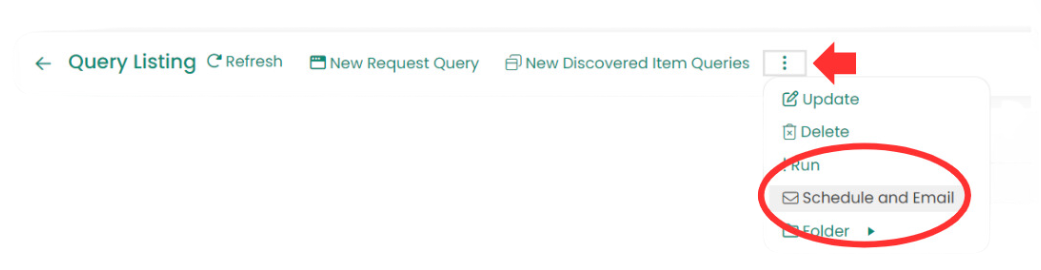 Users can email queries to themselves or other users by selecting Schedule and Email from the Query section of the ribbon toolbar.A Schedule and Email Query prompt will appear.
