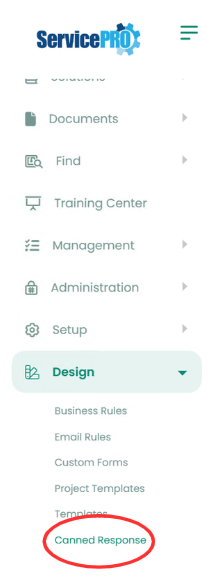 - From the Design tab, click on the Canned Responses option as highlighted below.