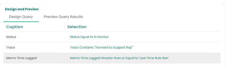 Please refer to Criteria Options for Rules and Reports for more information on conditions.