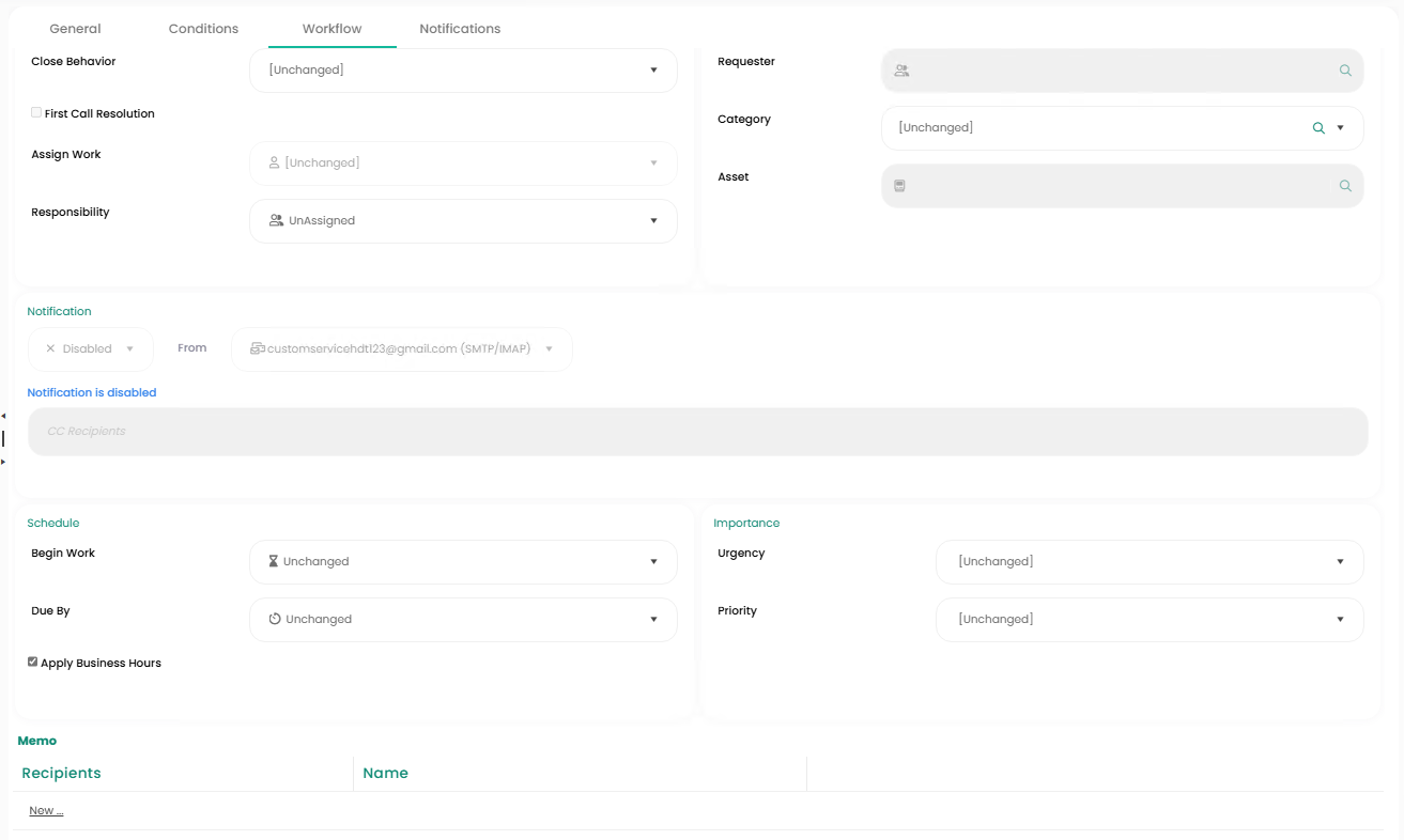 Workflow will not change therefore all fields will be set to "Unchanged":