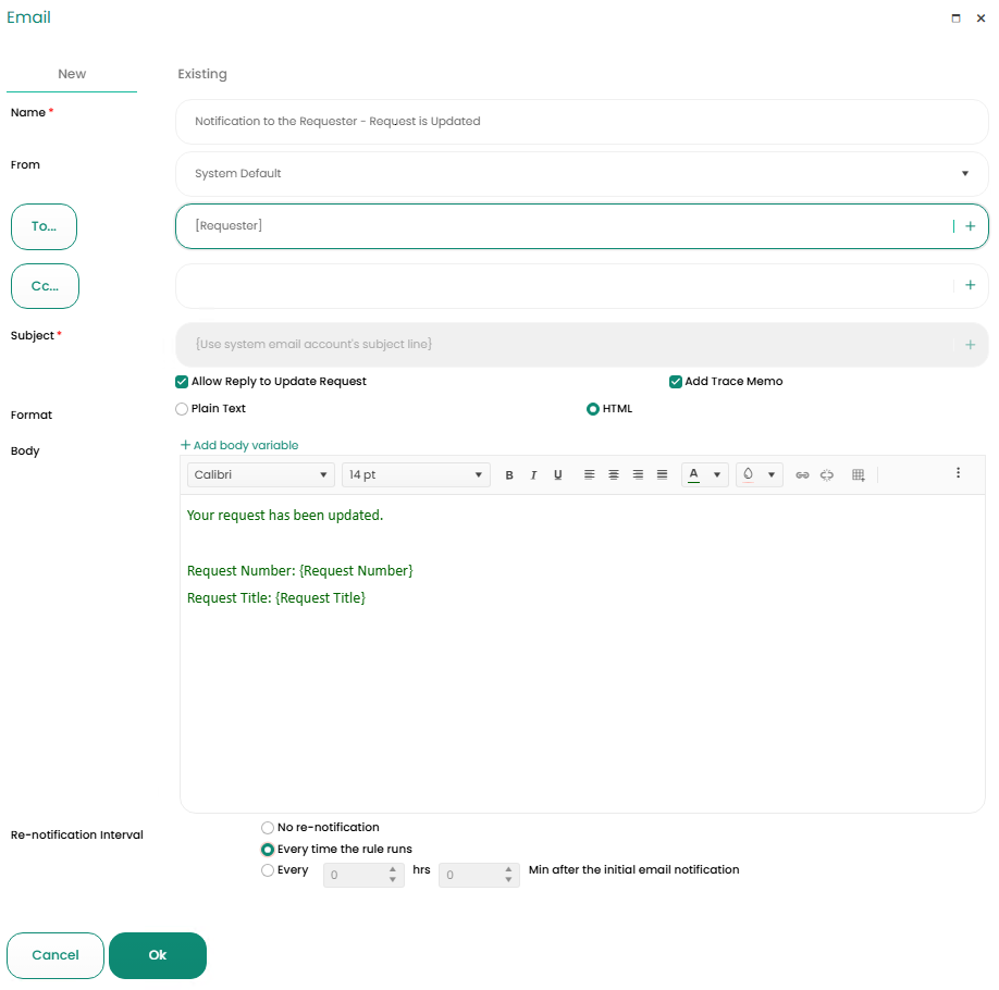 Sample 3: Email notification to Requester when a request has been updated by requester through email