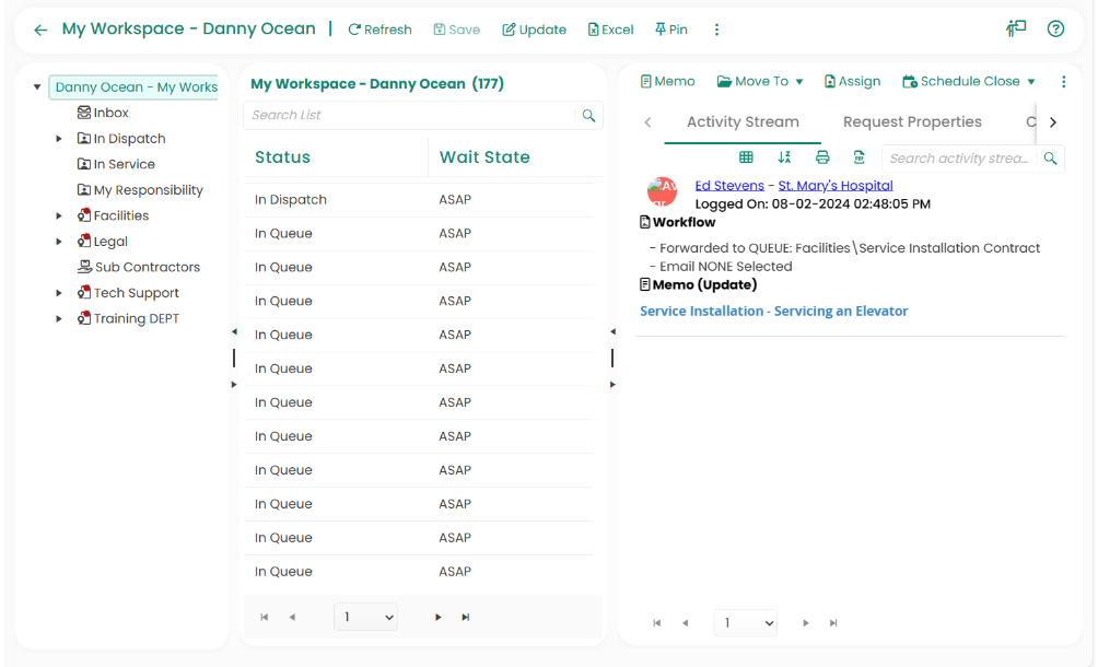 - When a service request or purchase request is dispatched to a shared queue folder, all Support Reps assigned to that queue receive an alert notifying them of the new request.