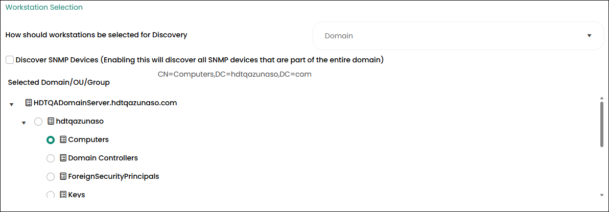 In ‘Domain’ workstation selection mode, Users will be able to make only one selection for Discovery Schedule configuration:
