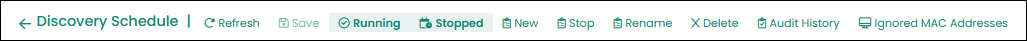 - Stop/Start- Stop a running Discovery Schedule, or Start a Discovery Schedule, depending on the selected schedule's current status. Stopped schedules are faded out in the Discovery Schedule Configuration list.
