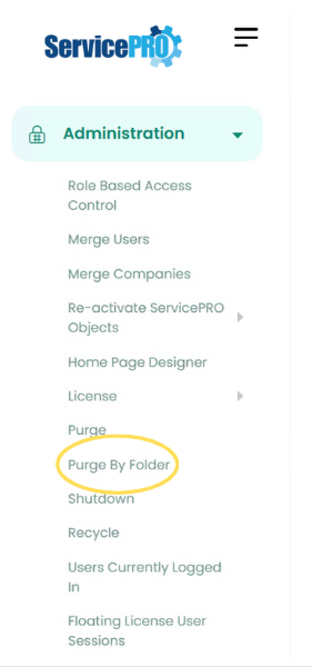- From the Administration tab, click on the Purge by Folder option as highlighted below.