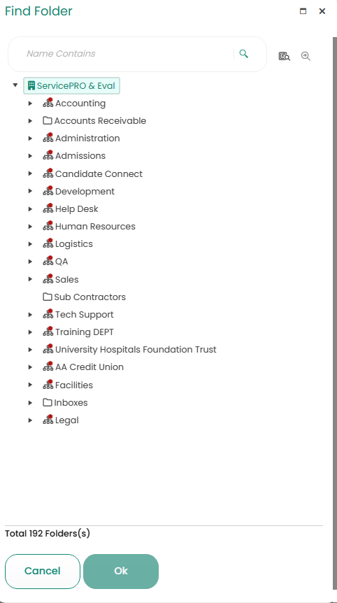 - Click on the Select Folder drop-down menu to select the Folders you want to Purge, and the below window will appear. Press Ok once the folder is selected.
