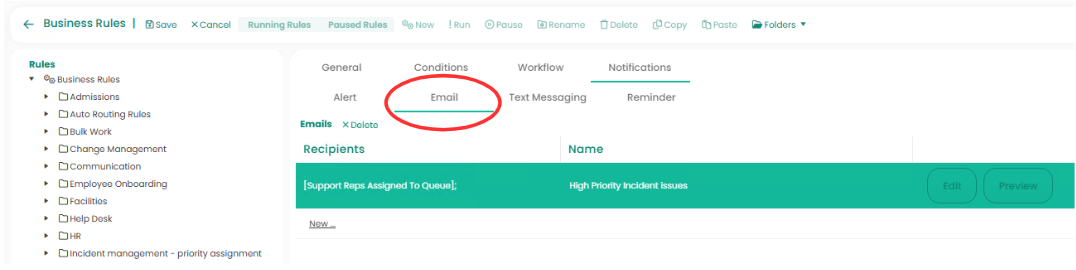 - Under Business Rules/Email Rules, select the Requests. Users can create an Email Template from either section.