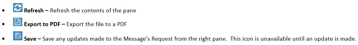 In the header of the right Preview pane, three icons can be used to refresh, print and save changes made to Requests.