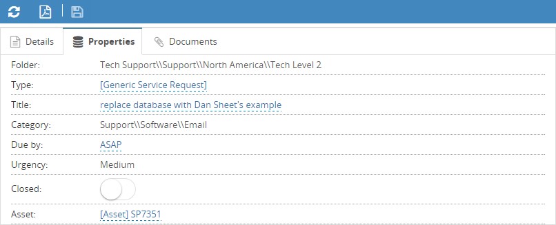In the Properties tab, users can view and edit the following fields:- Folder – The Folder or queue listing for the request