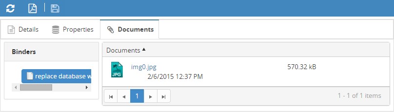 The documents tab will display associated Documents with the Message’s Service Request. This pane features:- Binders – Acts as folders for categorizing documents.