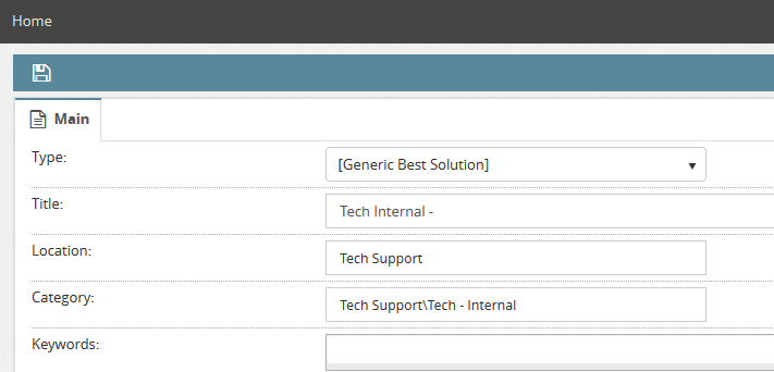 - Location – This is the ServicePRO OU or folder that this solution belongs to. For example, if this was a solution on how to adjust the temperature in the office, the Location may be set to Facilities.