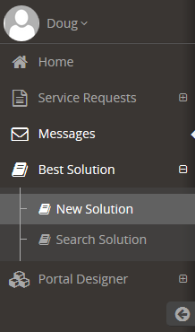 In the Support Rep Portal, Users can create or search for Best Solution articles that are intended for resolving common issues. Solutions are submitted by Privileged Users in the Support Rep portal, which can be viewed by all users.To access Best Solutions, Users can select the option from the side bar, then select New Solution or Search Solution.