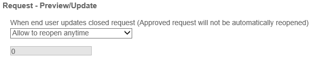 - When end user updates closed request (Approved request will not be automatically reopened) – Users can select the appropriate option from the dropdown, and enter the specified amount of time in hours in a field below this section.