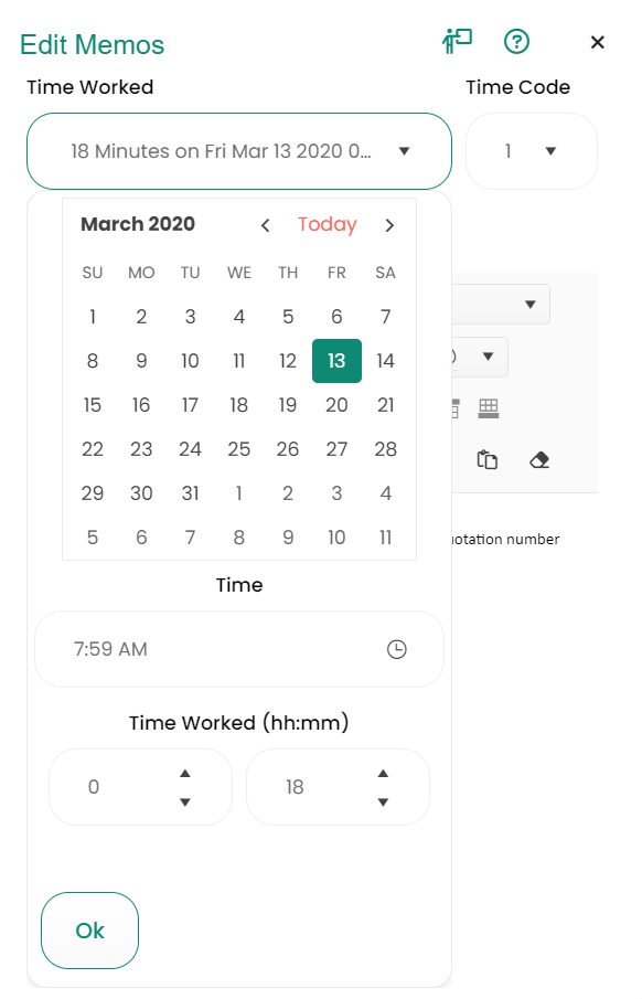 Editing Time Worked in Memo - Click on the Ok button to save the time worked.