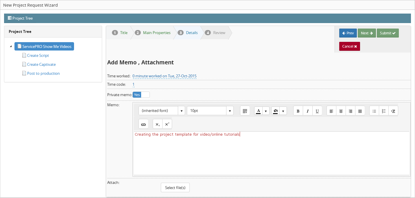- If the current task has main request properties stored in its template, the values for these properties should be appropriately prefilled in the ‘Title’, ‘Main Properties’ and ’Details’ steps.