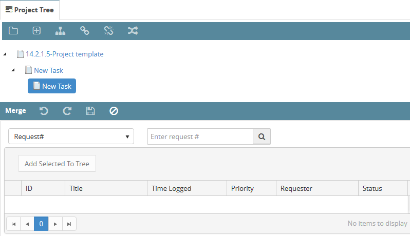 - Merge – Merge an existing request with the current Project Request. Users can search for the request by the criteria listed below, then add the searched request to the Project Tree:
