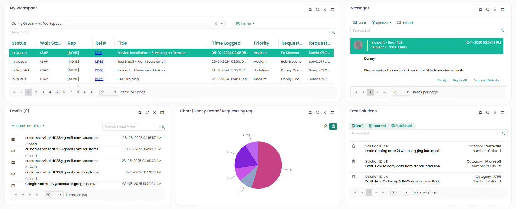 ServicePRO's Home Page features highly customizable Interactive Tiles, with features that can be arranged and organized to match individual user preferences.