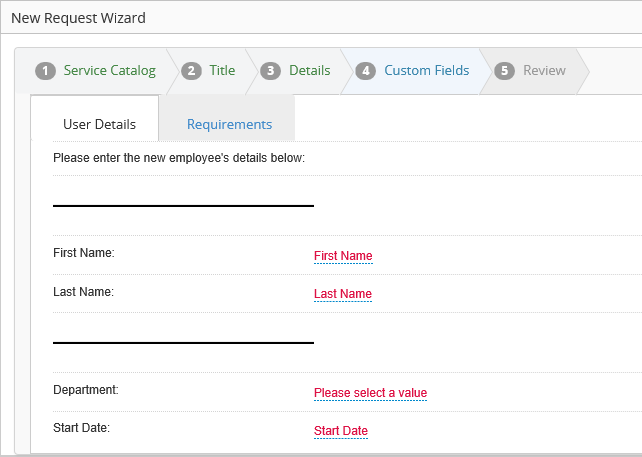 - Service Center – Select from departments or organizational units such as Development, Facilities, Human Resources or Tech Support