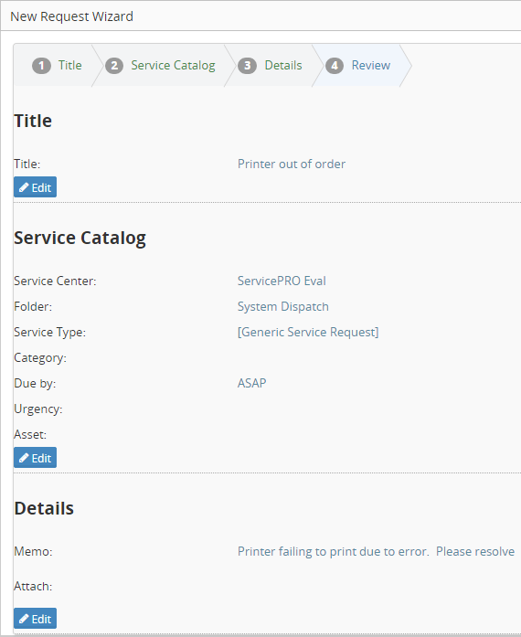 Every selection will feature an Edit button that can take the User back to the original step for further editing if necessary. Selecting each step will also perform the same function.