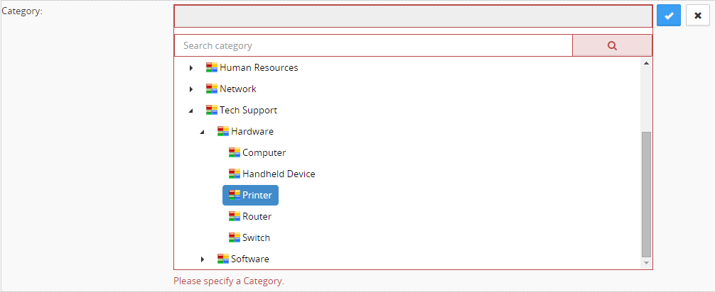 - Category – Select a Category for the request to be associated to. Examples Categories include Asset Management, Development, or Tech Support.
