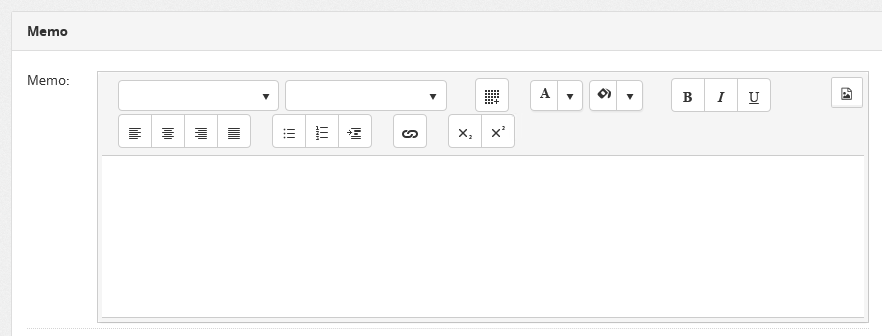 Enter the details of the request in the memo text field. Standard word processing tools are available in the header bar above the memo field, such as font sizes, color editing and alignment. If using IE you can also cut and paste text and images into the memo field