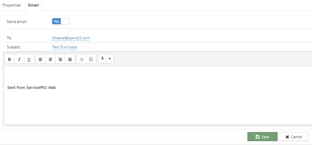 - To field – This field will be defaulted to the requester. The support rep will have the option to choose other user email addresses as recipients and the field has autocomplete feature enabled.