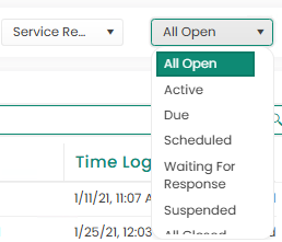 ‘Service Request’ and ‘All Open’ filter criteria will be selected by default.