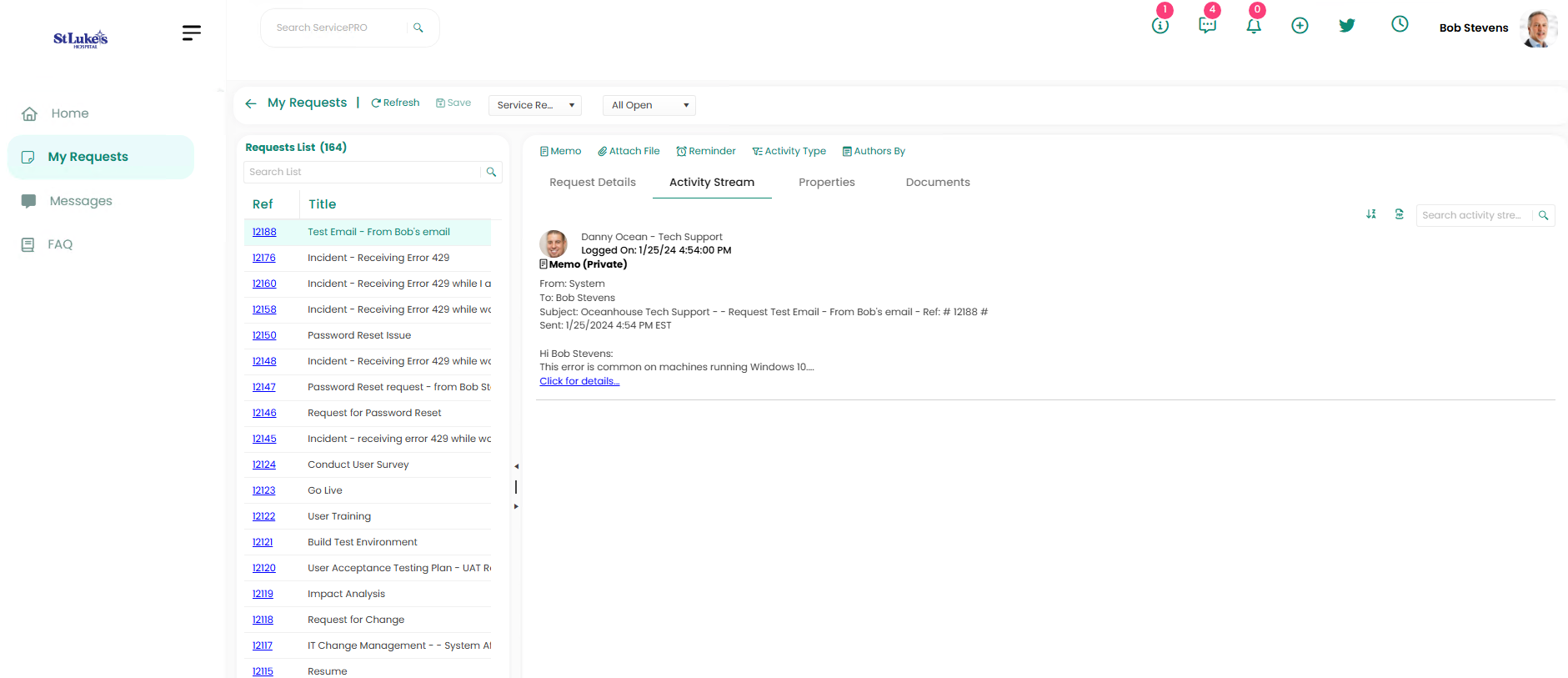 In addition, Users can browse the Request Properties tab, view attached Documents, and check on Custom Fields (if applicable).