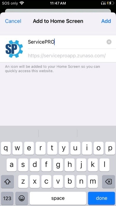 Installing and using ServicePRO as an App on iOS Devices using the Safari Browser