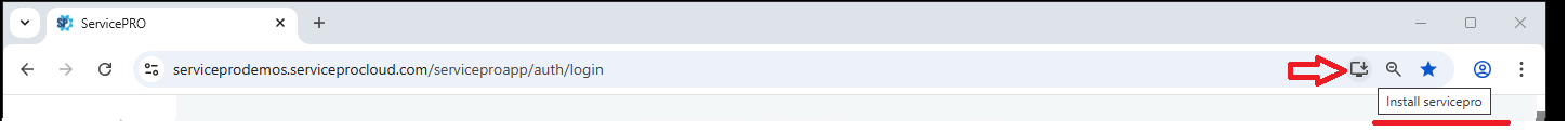 - Click on the “Install ServicePRO” button that is shown in the Browser URL Bar (indicated in the below picture).