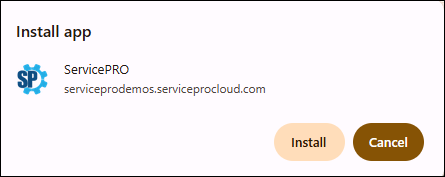 It is possible to install and use the 14.3.1.x version of ServicePRO application as an app after launching the application URL in the Google Chrome Brower.On Windows Desktop Devices, ServicePRO can be installed as an app through the Google Chrome Browser.