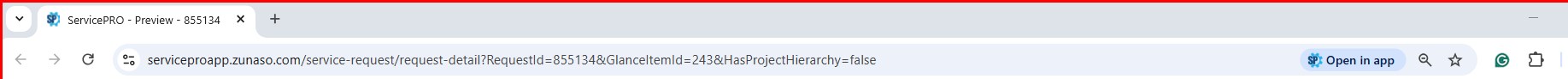 - In the Service Requests Listing Views, if you click on the Request # hyperlink, it opens in the current App Window itself. But if you perform Ctrl+Click on the Request # hyperlink in a list, it’s not following the setting for opening in a new ServicePRO app window, and so it opens in a browser tab instead.