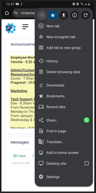 Installing and using ServicePRO as an App on Android OS Devices using the Google Chrome Browser