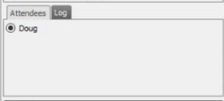 Each name has a radio button beside it to allow the user to be selected for ribbon options. The log tab shows the time of each action taken during the session including:
