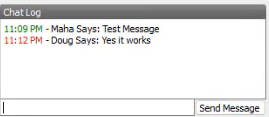 Each chat message will indicate the time it was sent (with text colored), the person who sent the message (with text bolded), and the chat text.