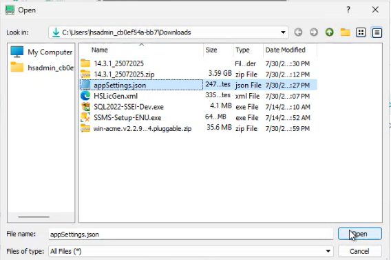 When the File Transfer button is clicked, the person clicking on the file will see a standard windows file select window.