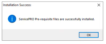 - Once the file is downloaded, a command prompt window will open, and Screen Sharing will automatically be installed to the directory listed above. A message saying “ServicePRO Pre-requisite files are successfully installed” will confirm installation. Press OK to close the windows.