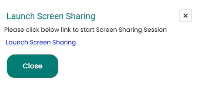 - Once the email is sent to the viewer, the following pop-up appears to Launch Screen Sharing. Click on the Launch Screen Sharing hyperlink in the pop-up.